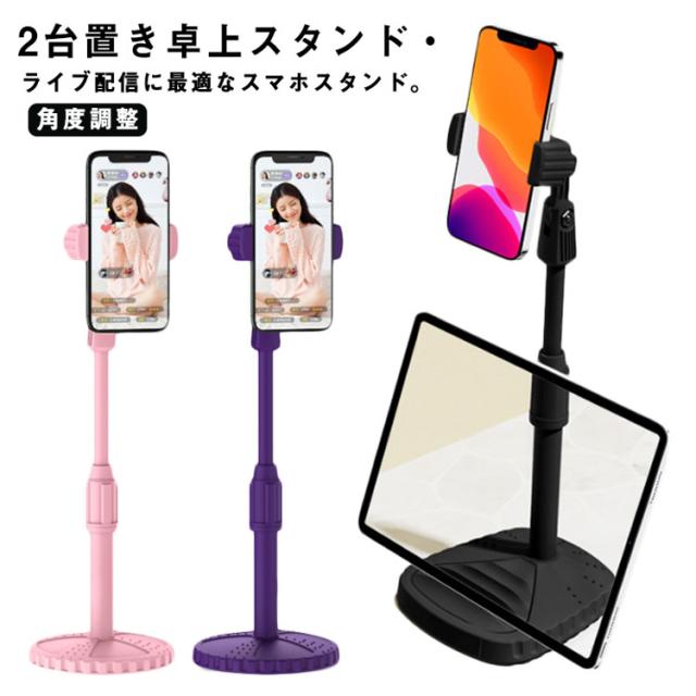 スマホスタンド 2台置き 卓上 タブレットスタンド スマートフォン iPhone 映画鑑賞 ビデオ通話 WEB会議 動画撮影 伸縮型 スマホホルダー アームスタンド 角度調整 高さ調整 滑り止め 安定感 シンプル おしゃれ 在宅勤務グッズ 猫背対策