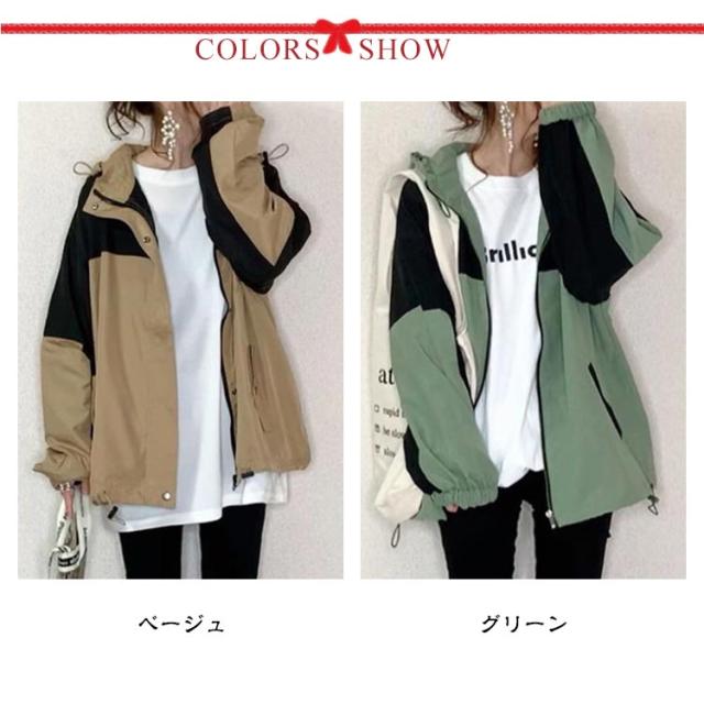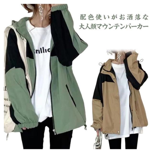 マウンテンパーカー アウター レディース パーカー ジャケット ブルゾン ミリタリージャケット ライトアウター 長袖 フード付き 小顔 切り替え ジャンバー 羽織り ドローコード 軽量 カジュアル グリーン ベージュ