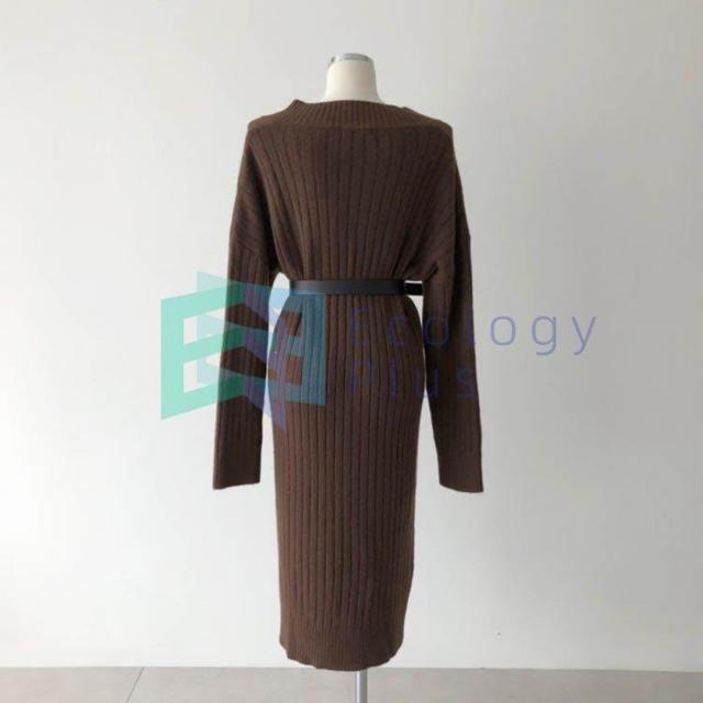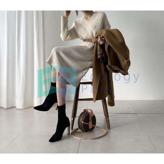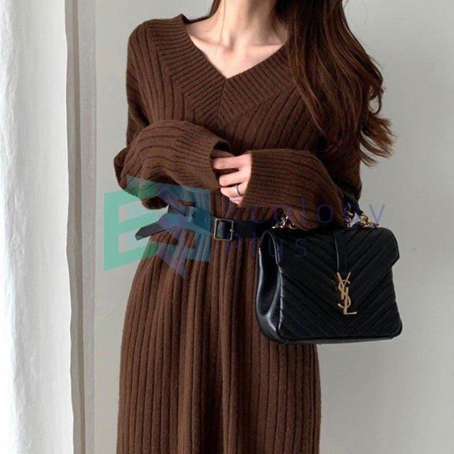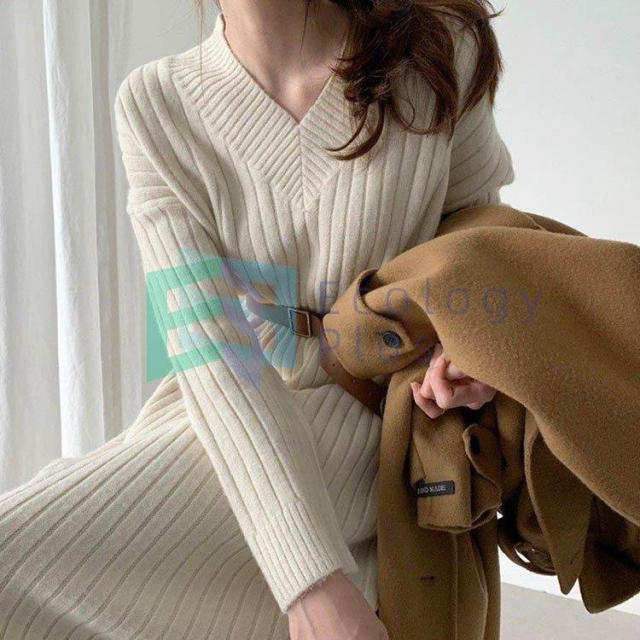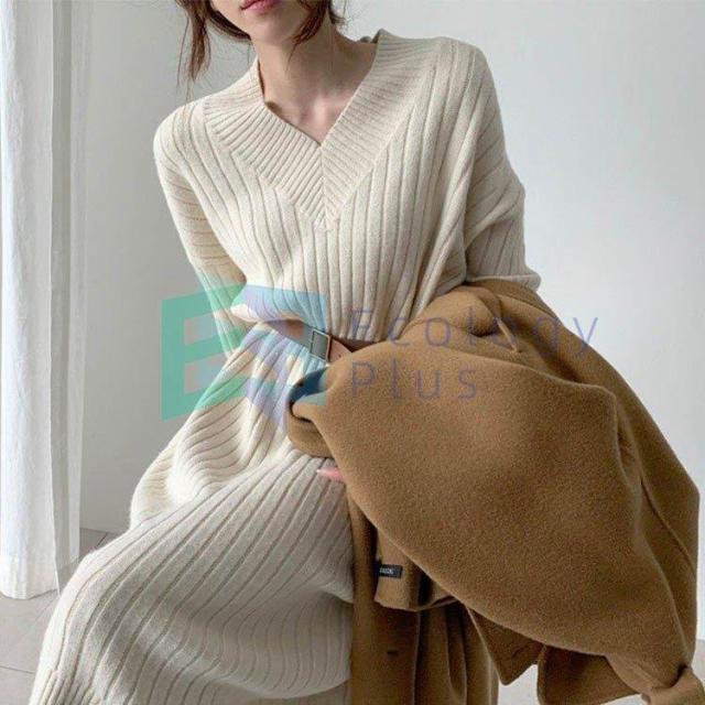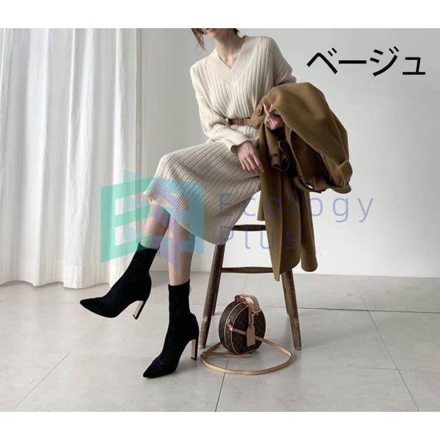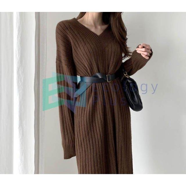 ニットワンピース 40代 ロング丈 レデース ワンピース ニット Vネック 長袖 冬ワンピース 無地 体型カバー ゆったり 着痩せ上品 通勤 OL 日常 ママコーデ