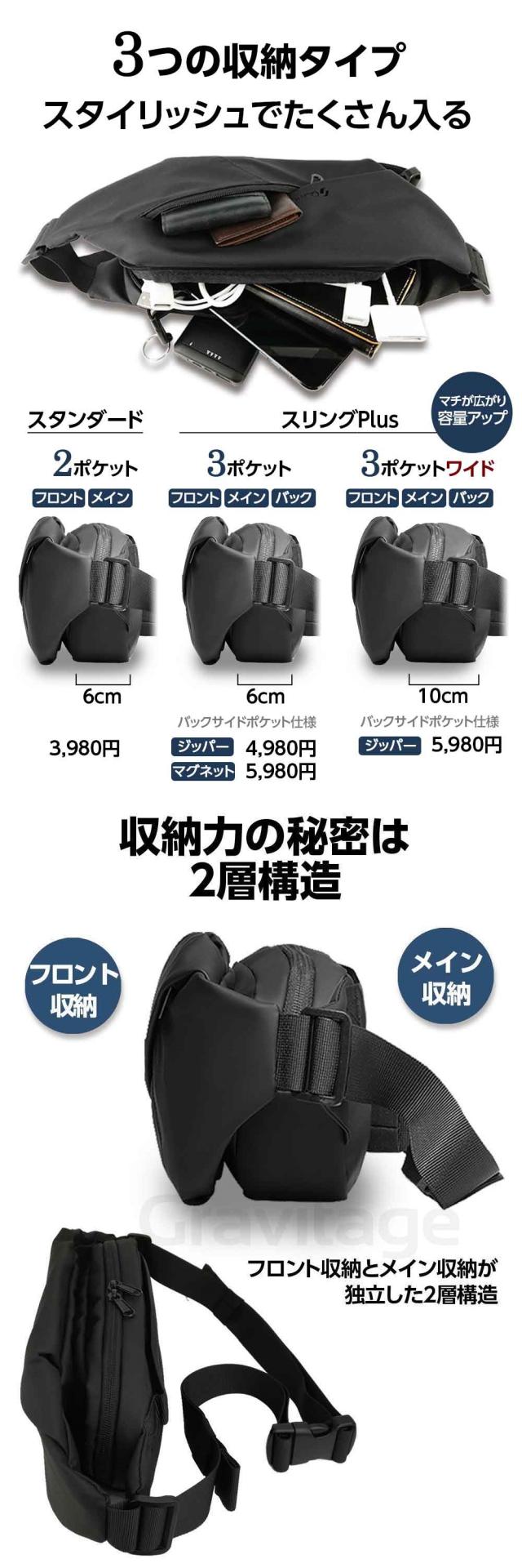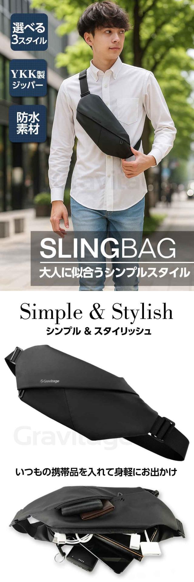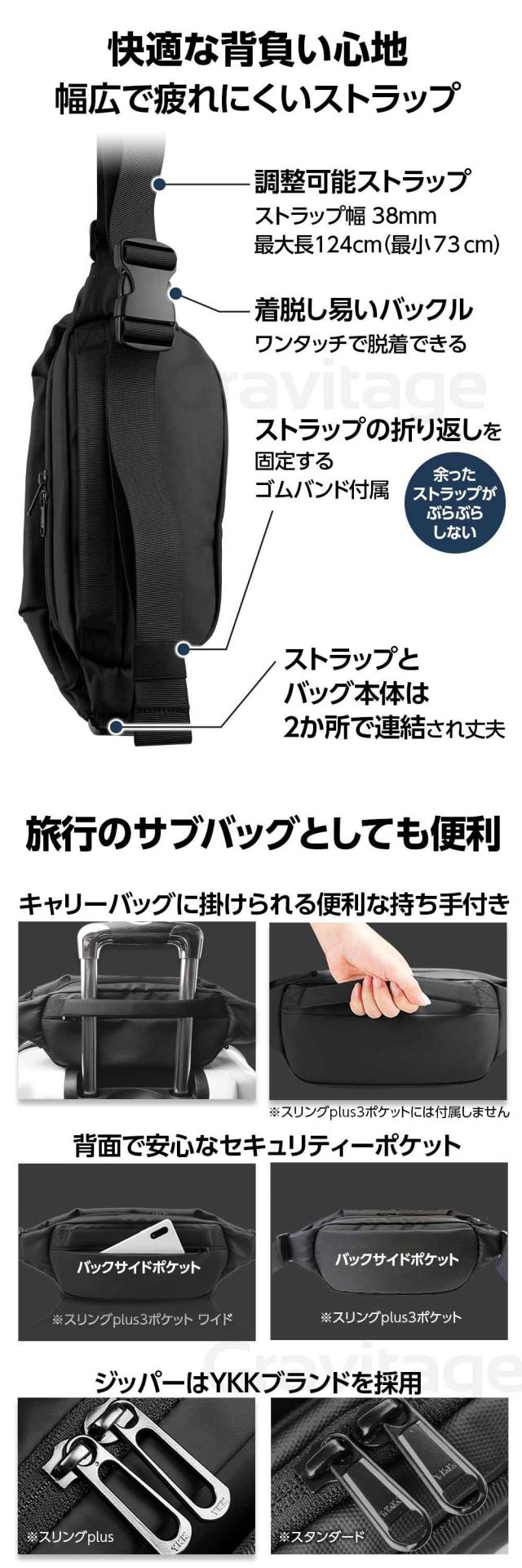 ボディバッグ 3ポケット マグネット開閉 メンズ レディース スリングバッグ ショルダーバッグ ウェストバッグ 大容量 スタイリッシュ 防水 プレゼント ボディーバッグ YKK