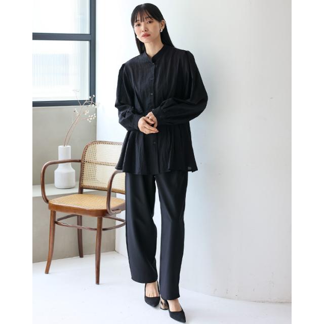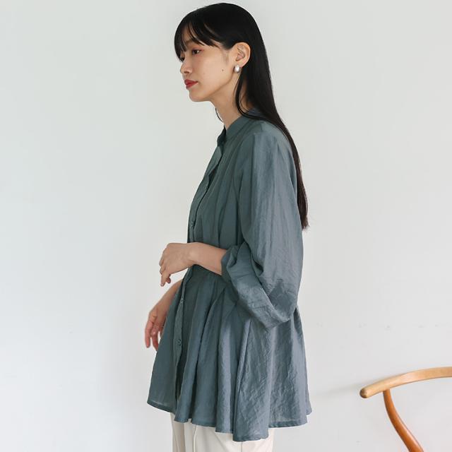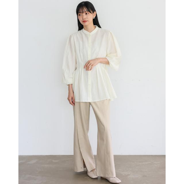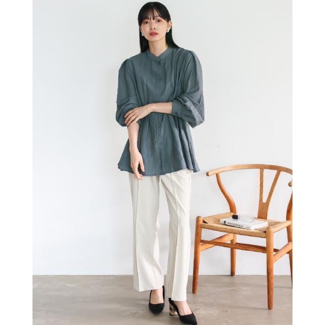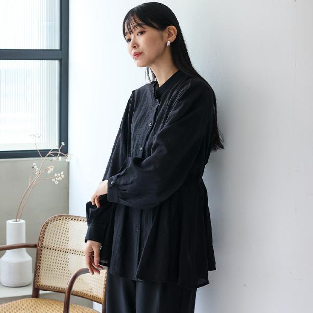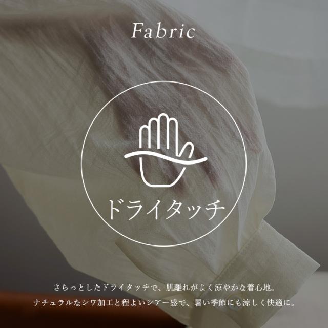 ナチュラルなシワ加工が施された、程よいシアー感のある素材が、軽やかで女性らしい印象に。