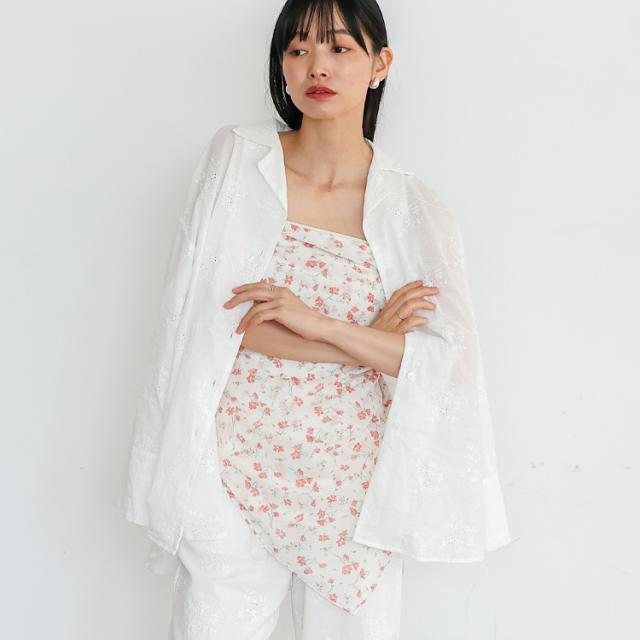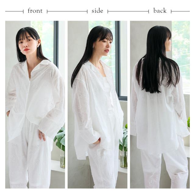 コットンフラワーエンブロイダリーレースシャツ