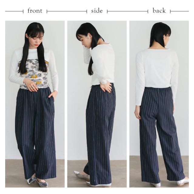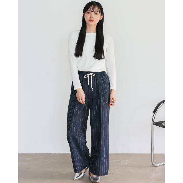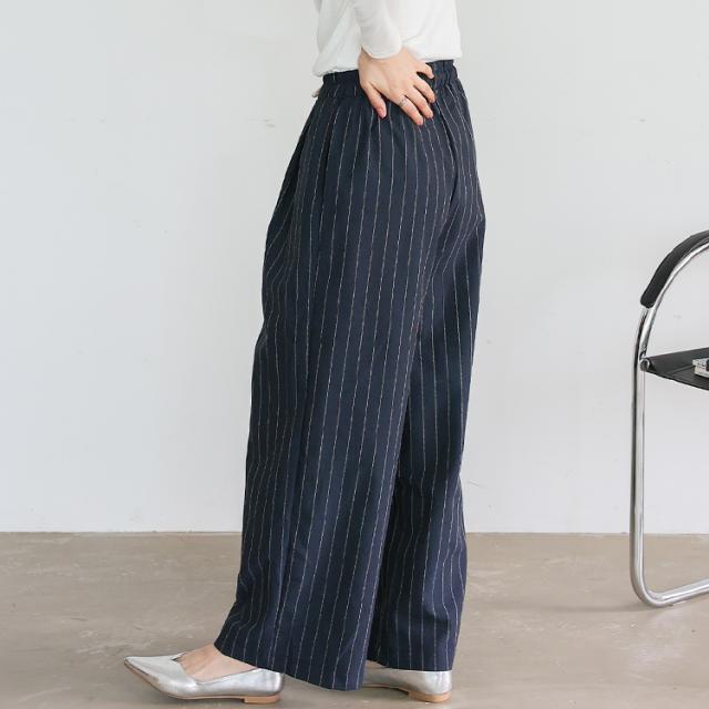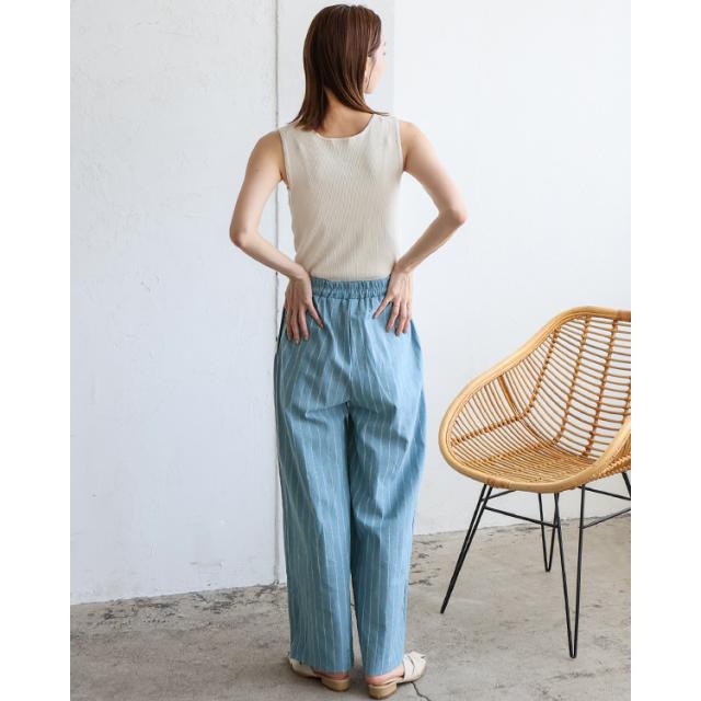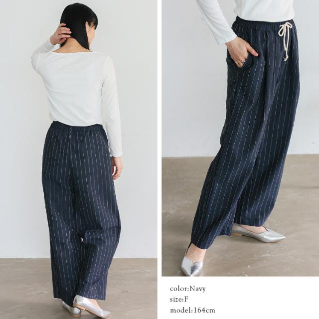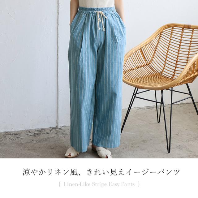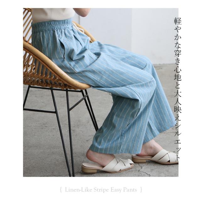 リネンライクストライプイージーパンツ
