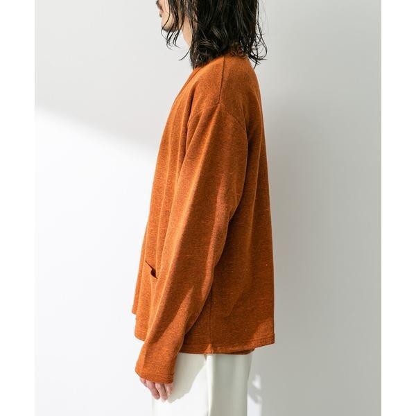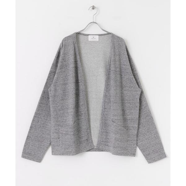 スウェットよりライトなミニ裏毛素材を使用したボタンレスカーディガン