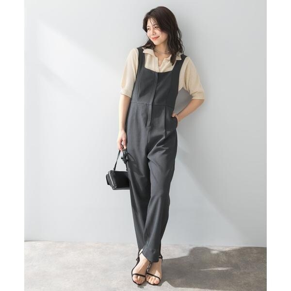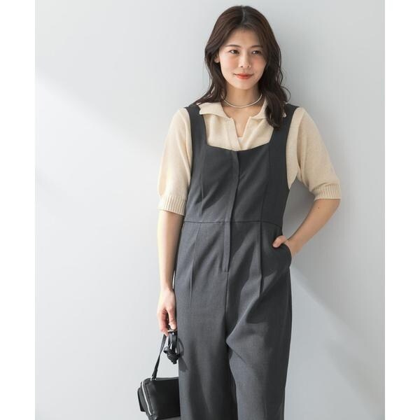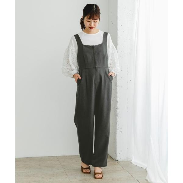 体のラインを拾うこと無く、綺麗なシルエットを生み出すオールインワンが登場。ストレートワイドシルエット×すっきりと見える胸元デザインにこだわった一着です。背中部分はゴム仕様で着心地が良く、ショルダーベルトは長さ調節も可能◎デイリーの着回しにお勧めの、イージーケア対応でご用意しました。フロントジップのため着脱も簡単で、取り入れるだけでバランスの良いスタイリングが完成します。