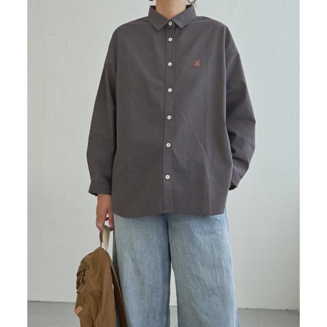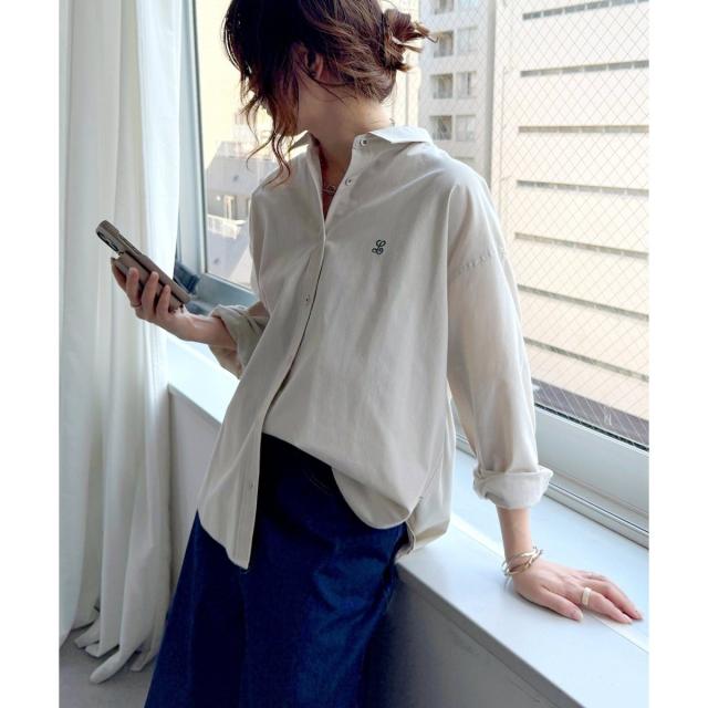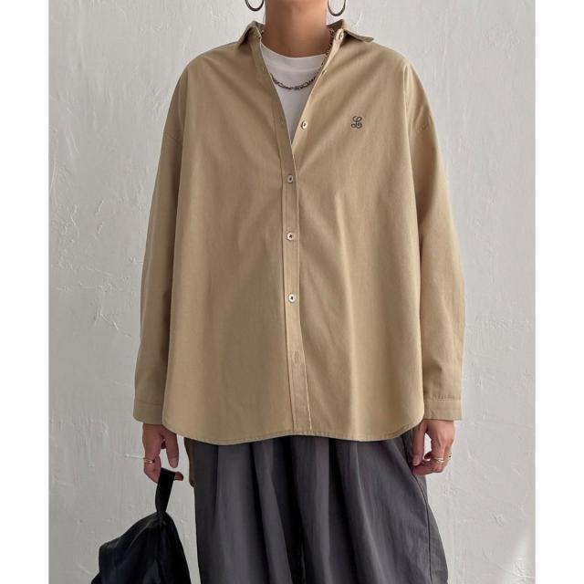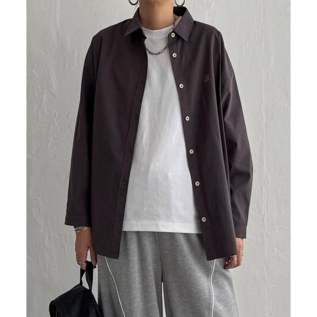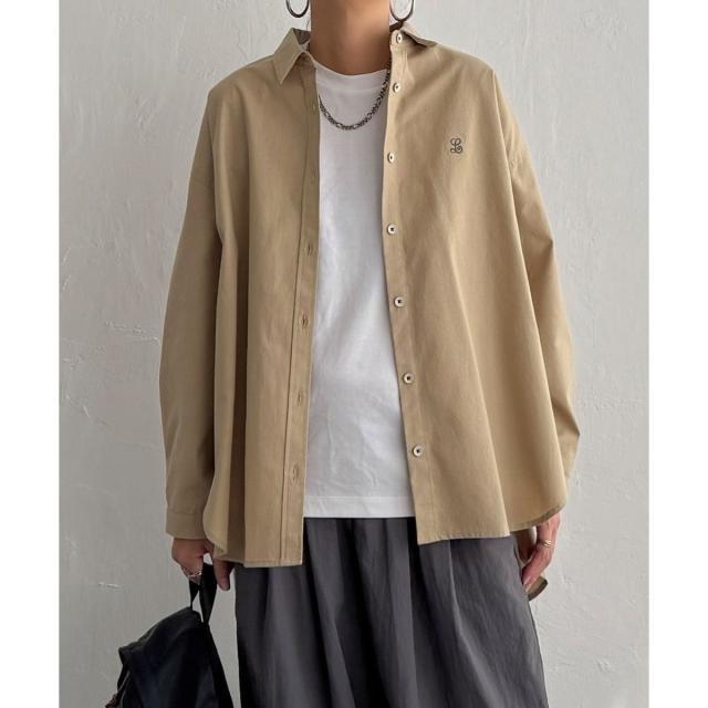 ミニロゴ刺繍がさりげないアクセントのオーバーサイズシャツ。