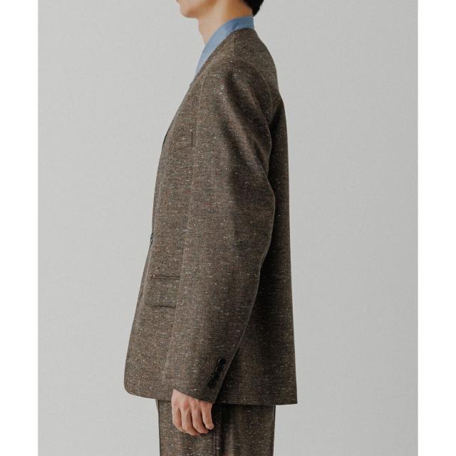 洗練と抜け感を両立した、本格仕立てのノーカラージャケット。