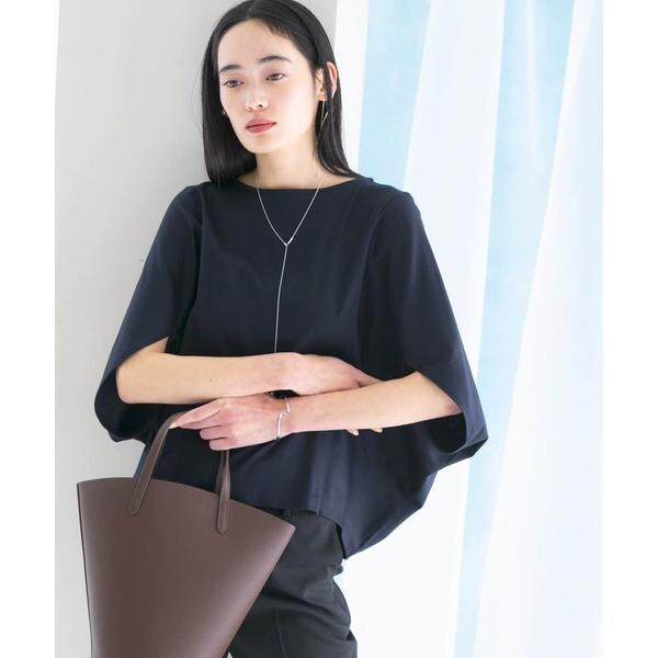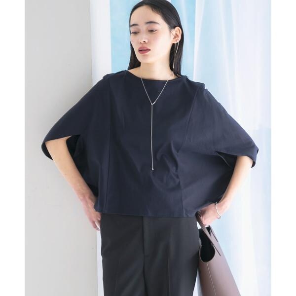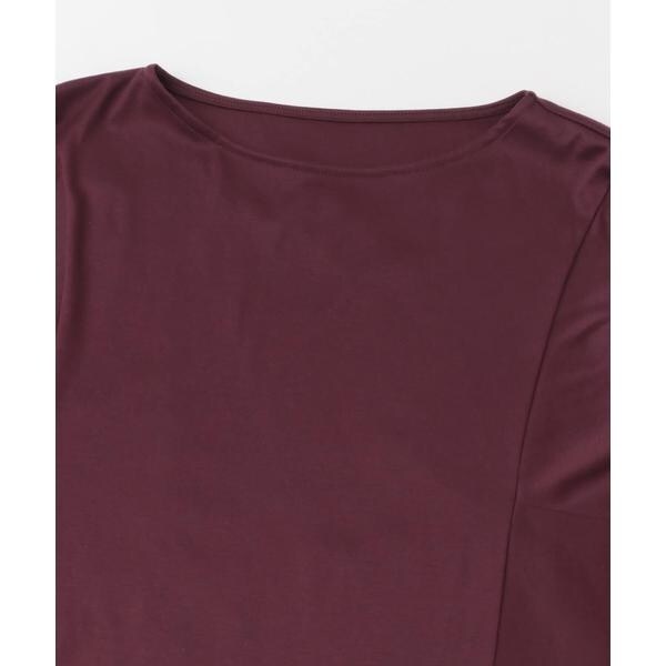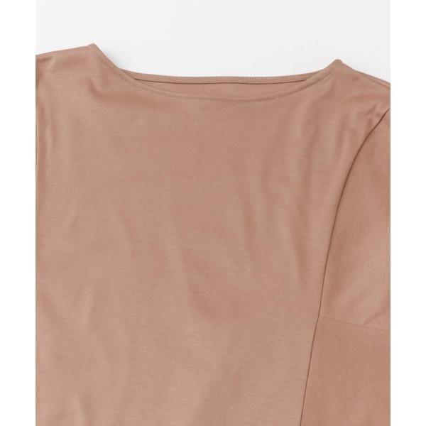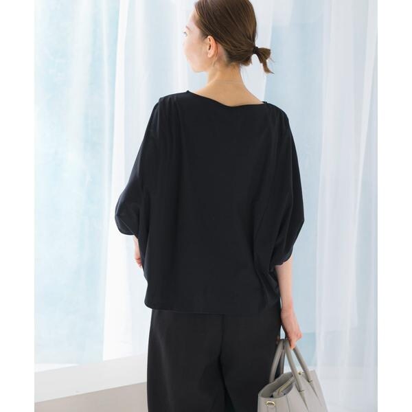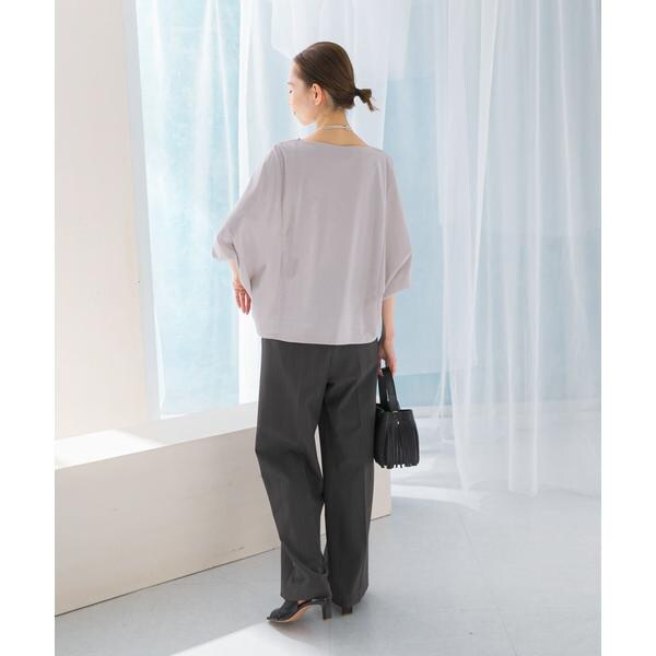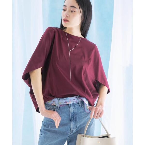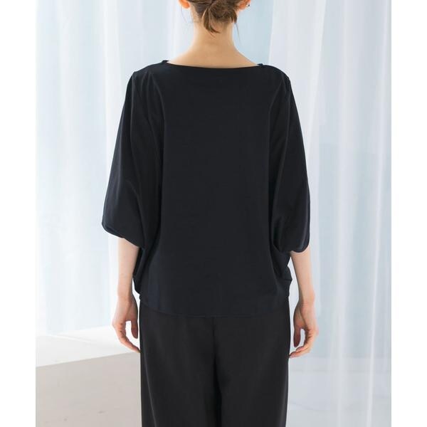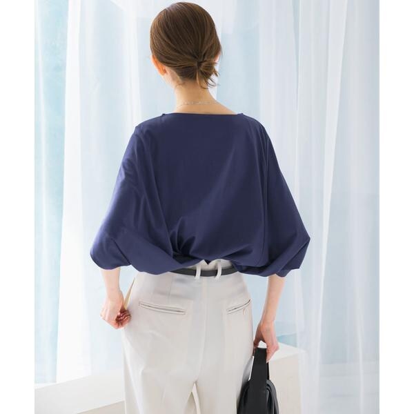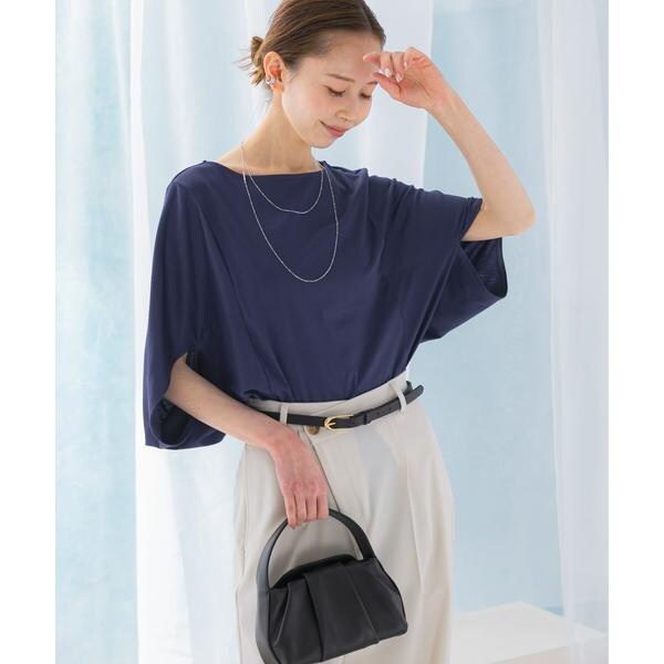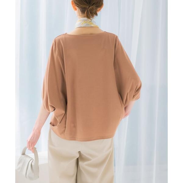 ラフに着こなせる肩馴染みの良いドルマンプルオーバーが、汗染み防止×接触冷感の機能を加え今季も登場。すっきり見えを叶える、ボートネック仕様で仕立てました。肘まで隠れる、女性らしい5分袖丈も魅力ポイント◎ソフトな風合い×伸縮性も兼ね備え、これからの時期に嬉しいリラクシーな着心地です。腰回りをカバーする後ろ下がりデザインのため、幅広いボトムと好相性の一着に。