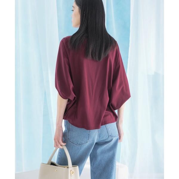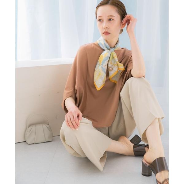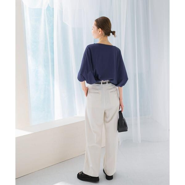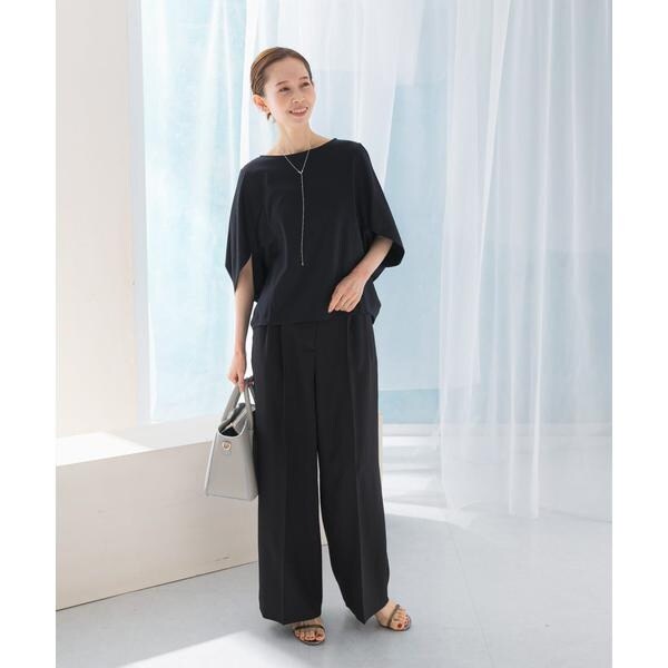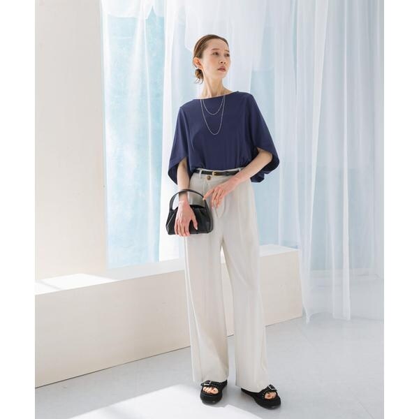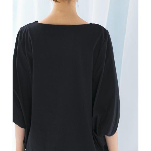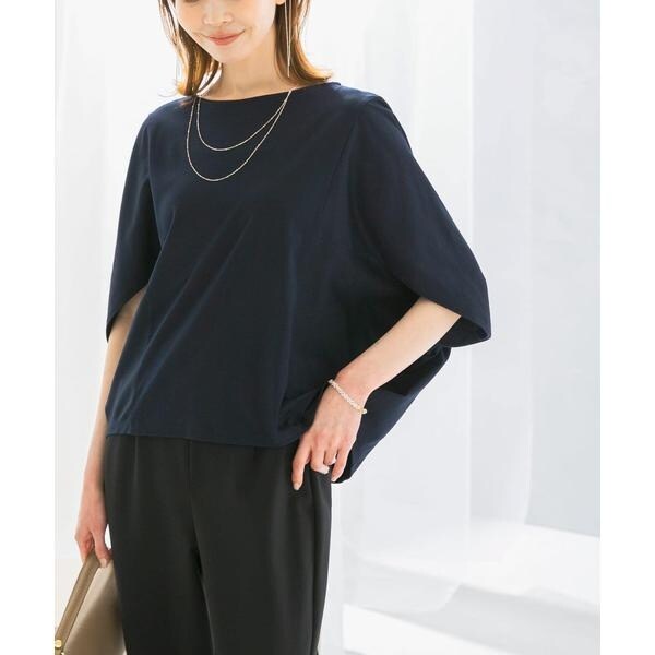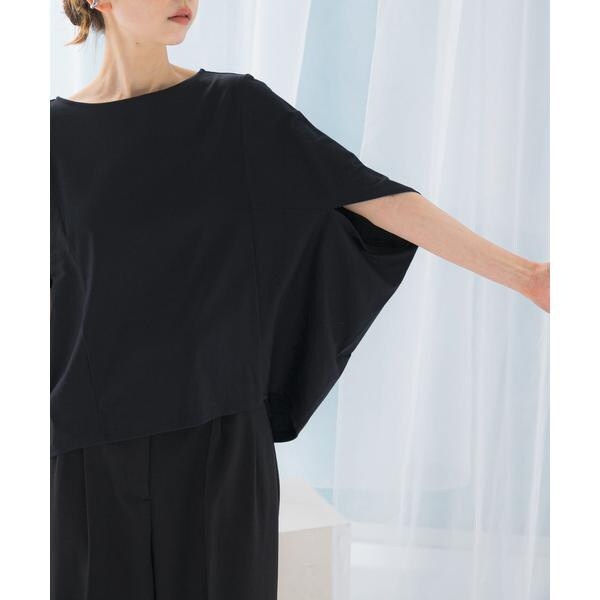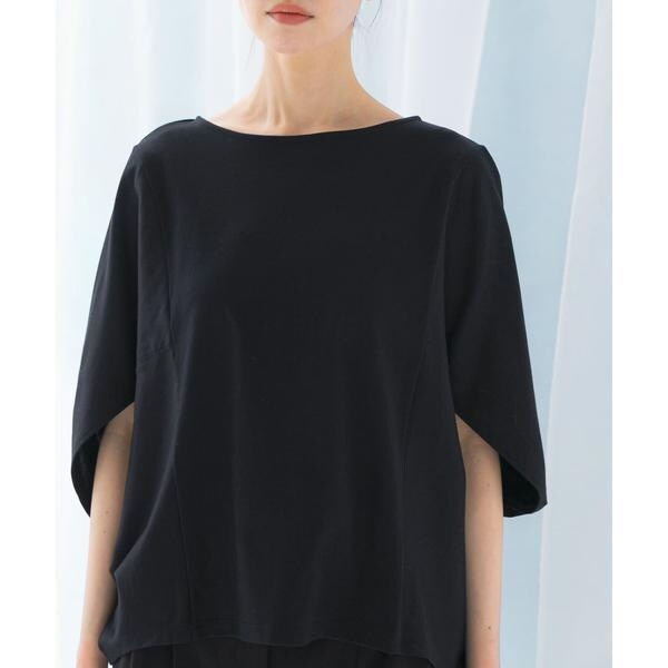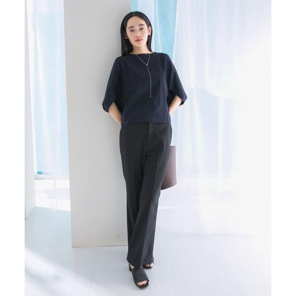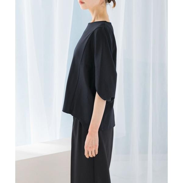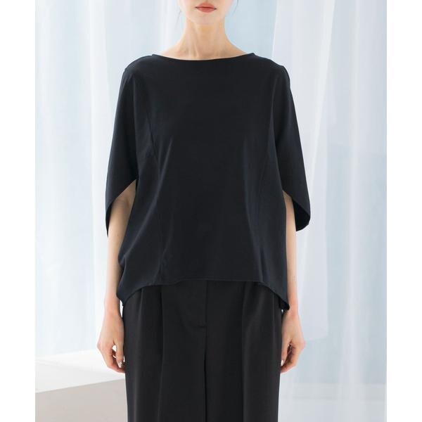 ラフに着こなせる肩馴染みの良いドルマンプルオーバーが、汗染み防止×接触冷感の機能を加え今季も登場。すっきり見えを叶える、ボートネック仕様で仕立てました。肘まで隠れる、女性らしい5分袖丈も魅力ポイント◎ソフトな風合い×伸縮性も兼ね備え、これからの時期に嬉しいリラクシーな着心地です。腰回りをカバーする後ろ下がりデザインのため、幅広いボトムと好相性の一着に。