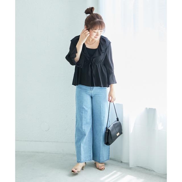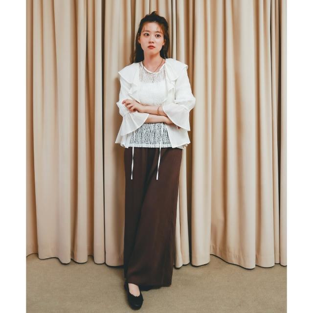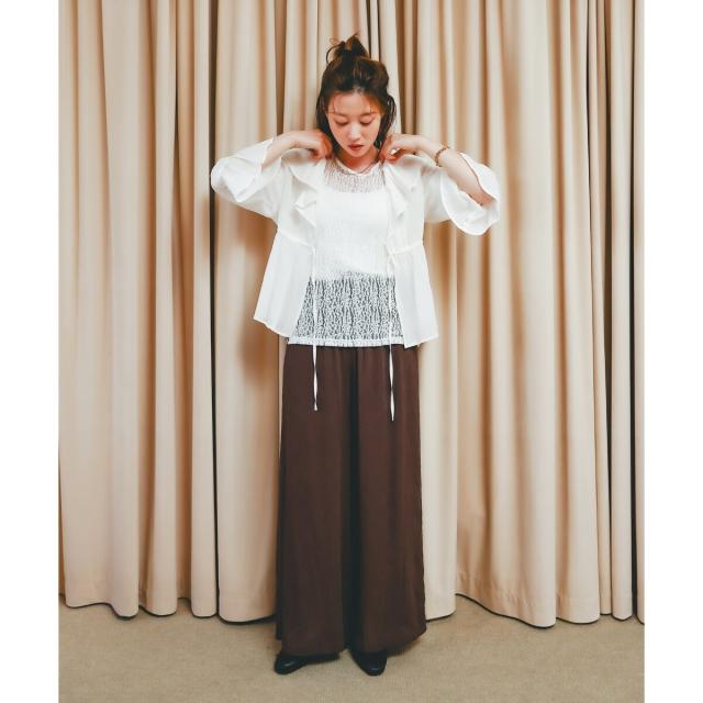 クロップド丈なのでワイドパンツにも好相性。