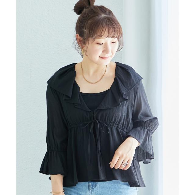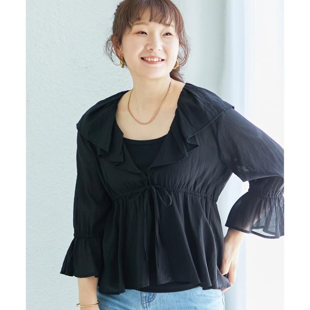 フリルカラーペプラムブラウス