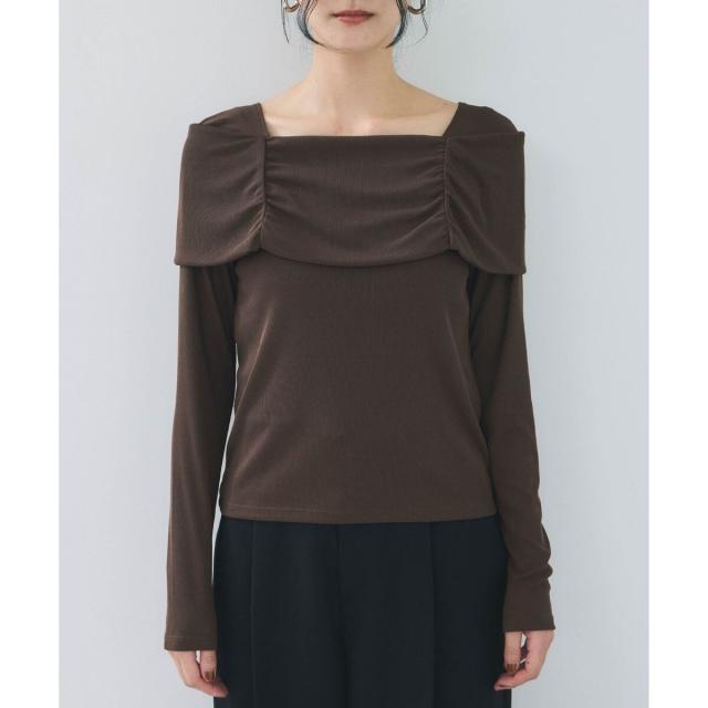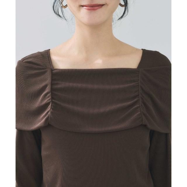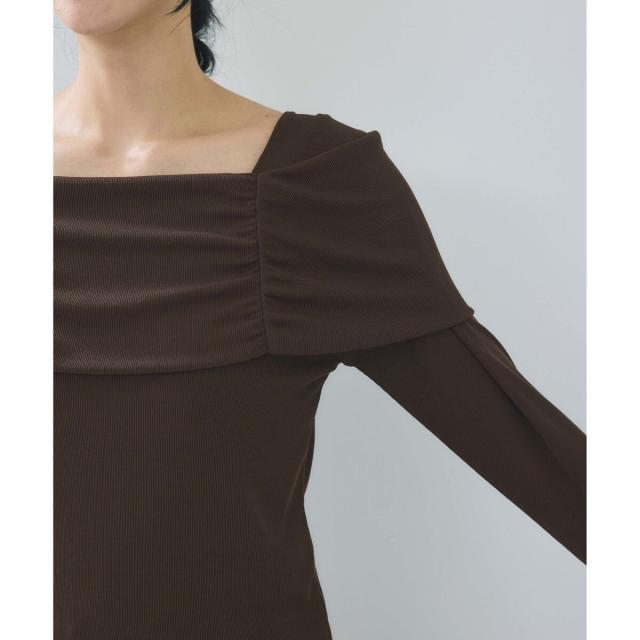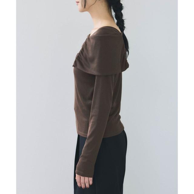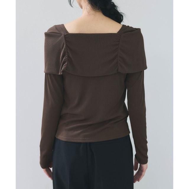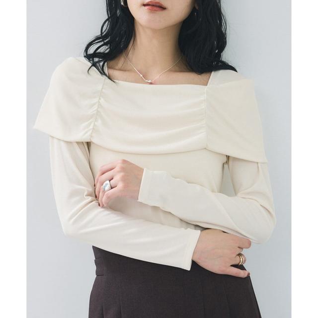 衿の縦シャーリングデザインがポイントの女らしいオフショルダートップス!