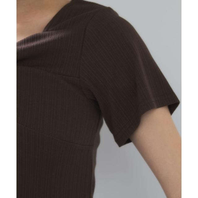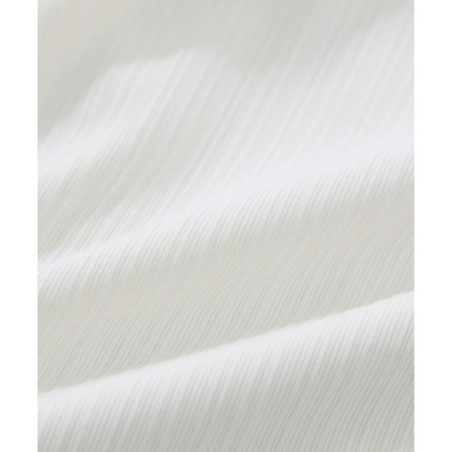 素材がリブなので気になる体のラインを拾わないところもうれしいポイント。ネジリ位置が高めなのでインスタイルも脚長見えに。暑い時期から着れて、秋に入ればジャケットインに使ってもデザインポイントが顔回りを華やかに見せてくれます。