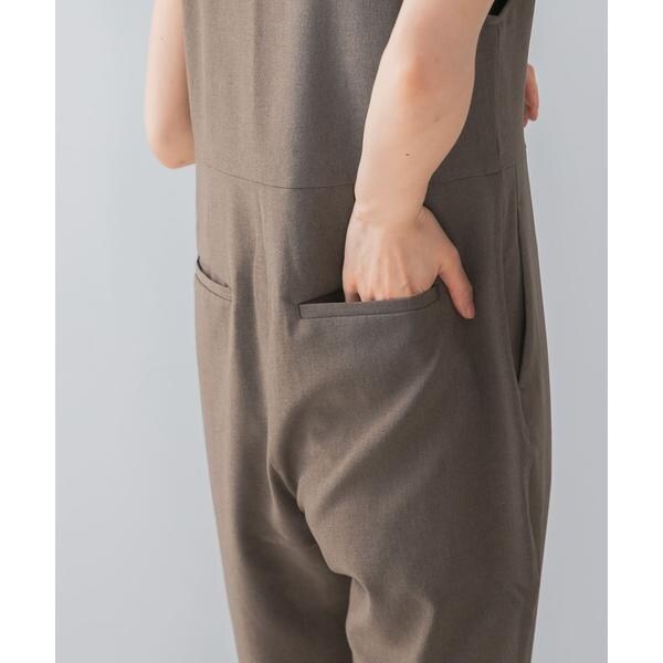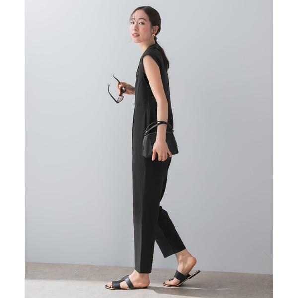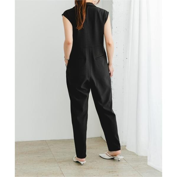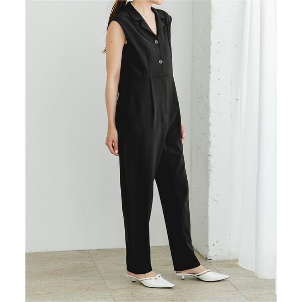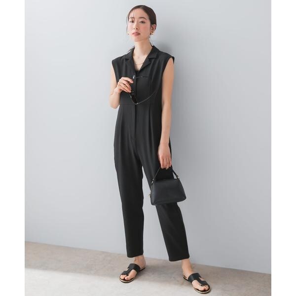 襟付きの首元が大人のこなれ感を演出するオールインワン。機能性素材を使用することで夏もストレスフリーで着用できます。前開きになっているため着脱もしやすく、程よくゆとりのあるサイズ感はリラクシーな着心地を実現。やや肩にかかる肩幅デザインは、二の腕が目立たないように仕上げました。