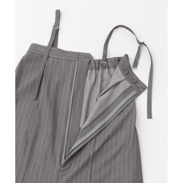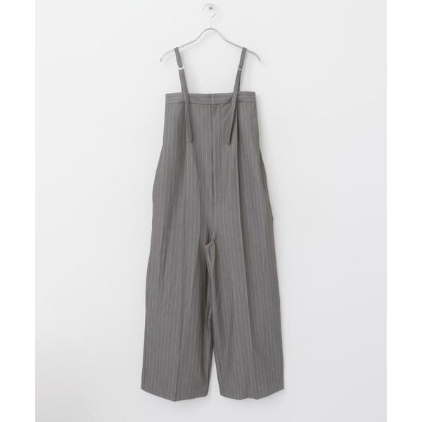 いつものパンツスタイルを格上げする、洗練されたスレートシルエットのオールインワン。ベアトップ風な着こなしから、サロペットスタイルとシーンを問わずに着回しの効く一着です。取り外しができる肩紐は、アジャスター付きで長さ調節が可能◎インナーにはハイネックカットソーやリブニットを合わせて、スマートな着こなしもお勧めです。スタイリングに馴染むBLACK、ストライプ柄が縦ラインを強調するGRAYの2色展開でご用意。