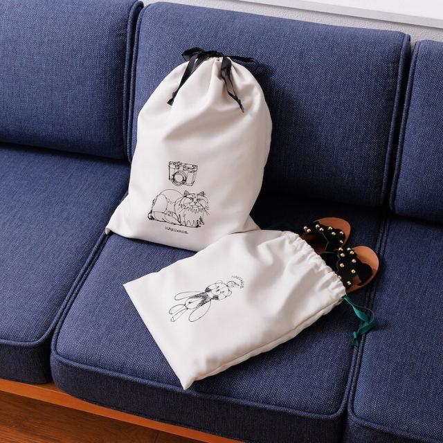 長毛ネコと人気のリンゴクマのプリントが可愛い巾着セット。