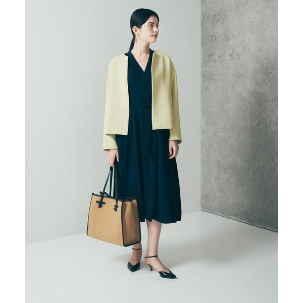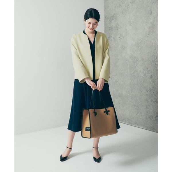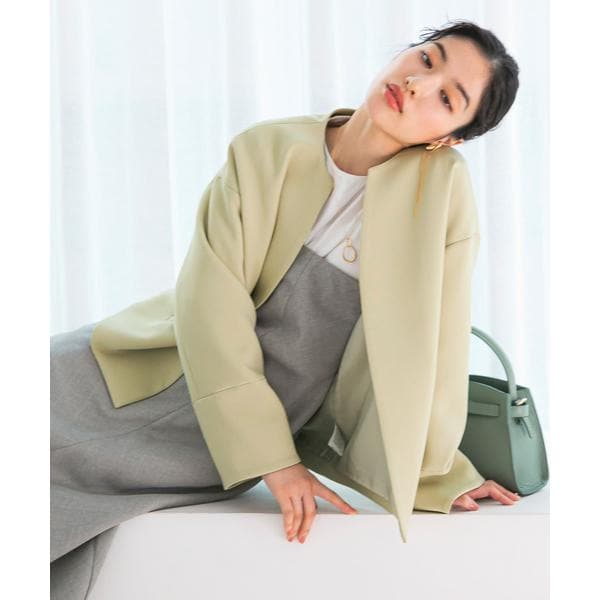すっきりとしたノーカラーデザインで、インナーを選ばないベーシックなコート。綺麗見えするトリプルクロスを採用し、適度なハリ感を持ち合わせた生地でお作りしました。UVカット機能付きで、さっと羽織れるコンパクトなサイズ感もこだわりポイント。きちんと感がありながらも肩線を落とすことで、自然な丸みを帯びたシルエットを生み出します。デイリーのみならず、入卒園式などのフォーマルなシーンやオフィススタイルにもぴったりなアイテムに。