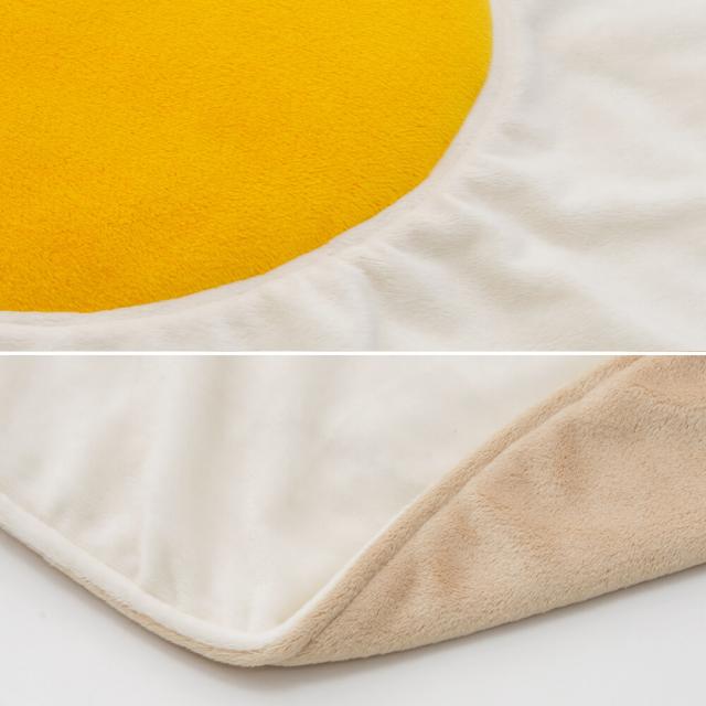 思わず笑顔になる目玉焼きモチーフのふわふわブランケット。