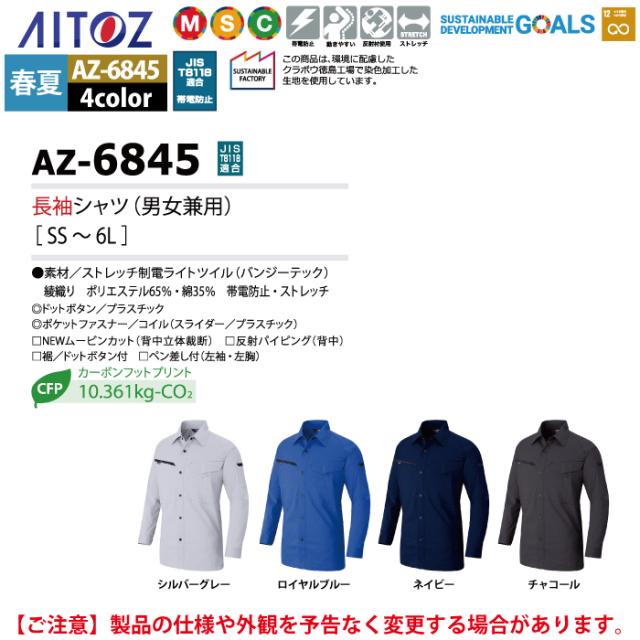 アイトス Aitoz 作業服 AZ-6845 長袖シャツ 5L 春夏用