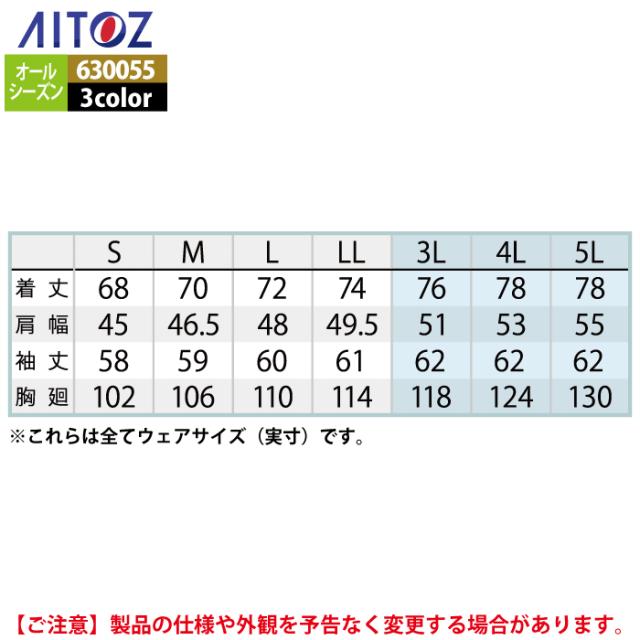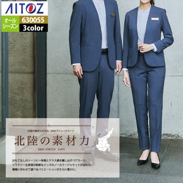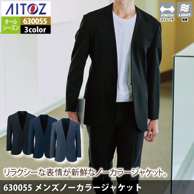 オフィスウェア 630055 メンズノーカラージャケット 3L-4L オールシーズン アイトス Aitoz