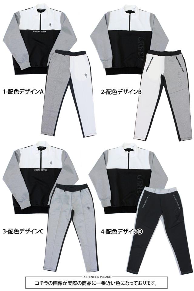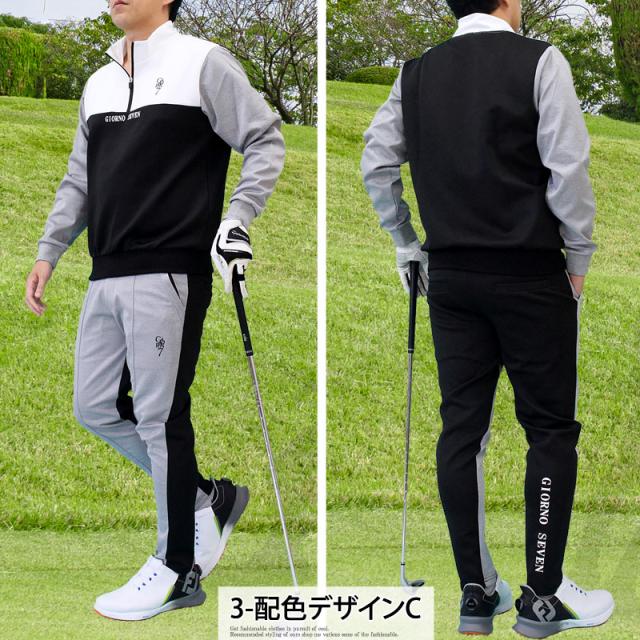 M~XXL 新作 送料無料 ゴルフウェア メンズ 上下セットアップ GIORNO SEVEN ジョルノセブン ハーフジップトレーナー トップス ゴルフパンツ 切替 ブランド おしゃれ 秋冬 春夏