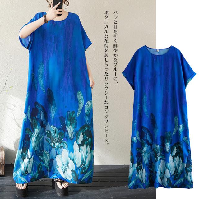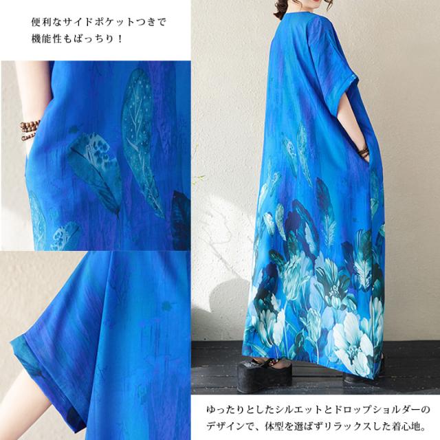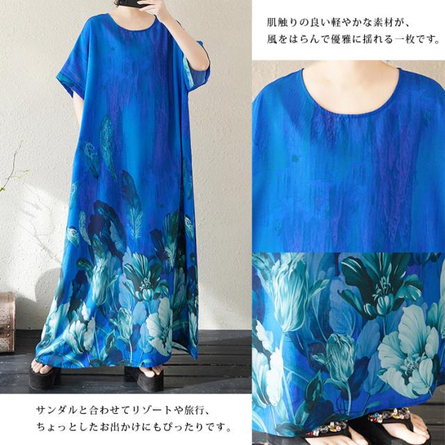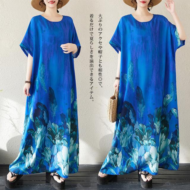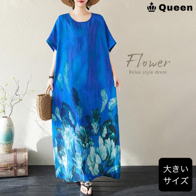 大きいサイズ ワンピース 花柄 マキシ丈 半袖 ゆったり 体型カバー 夏 リゾート レディース (378999)
