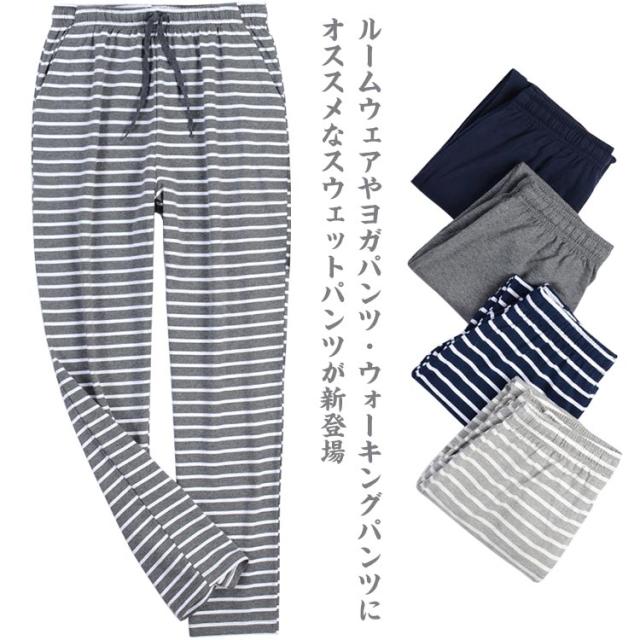 部屋着 ルームウェア ヨガパンツ ルームパンツ 送料無料 メンズ ボーダー柄パンツ ボーダーパンツ スウェットパンツ パジャマ ジャージ 下着 ロングパンツ スエットパンツ ボーダー柄 無地 コットン 春 夏 秋