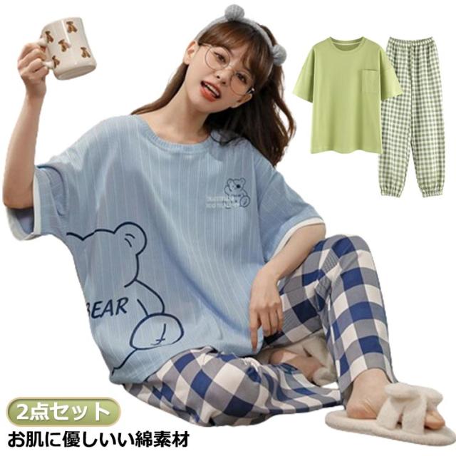 上下セット ルームウェア レディース レディース セット 綿 パジャマ 半袖 ルームウェア セットアップ 可愛い 部屋着 春 半袖 半袖 ワンマイルウェア 着 ロングパンツ 外出 冬 秋 夏 秋冬 春夏 綿 おしゃれ 大人可愛い 外出 できる 部屋 韓国