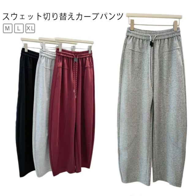 カーブパンツ スウェット レディース 体型カバー ジャージ コクーンパンツ スエット パンツ バルーンパンツ ウエストゴム きれいめ ボトムス ワイドパンツ カジュアル 秋