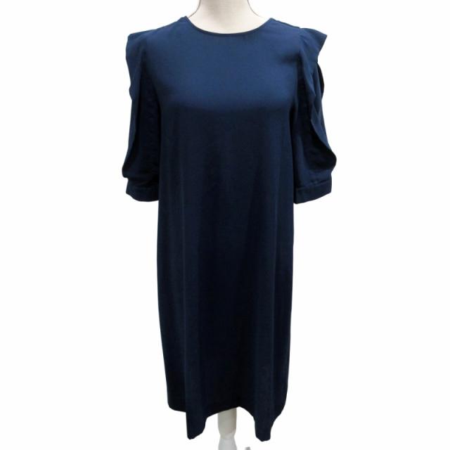 【中古】ミス ジェイ MISS J ワンピース フリル 袖切替 シフォン シアー 5分袖 ロング 38 約M 紺 ネイビー
