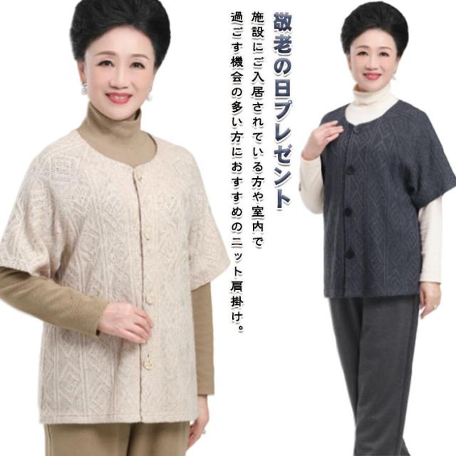 シニアファッション ニット カーディガン ニット肩当て レディース ニット 羽織 肩当て 半袖 ニットカーディガン ケーブル編み 80代 70代 90代 シニア 高齢者 敬老の日 プレゼント 実用的 春秋冬 軽量 アクリル 祖母 おばあちゃん 服 誕生日 ミセス 女性 婦人 通院 施設 入所