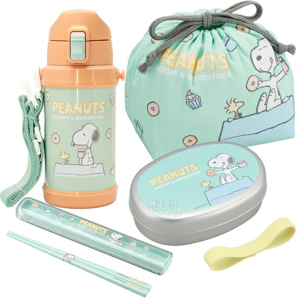 スヌーピー お買得4点セット アルミお弁当箱 350ml 箸&箸箱 巾着 水筒