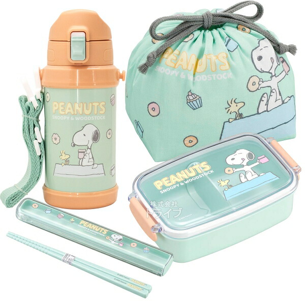 スヌーピー お買得4点セット 角型お弁当箱 500ml 箸&箸箱 巾着 水筒
