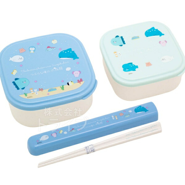 つぶらな瞳の水族館 シール容器2P 箸&箸箱 セット