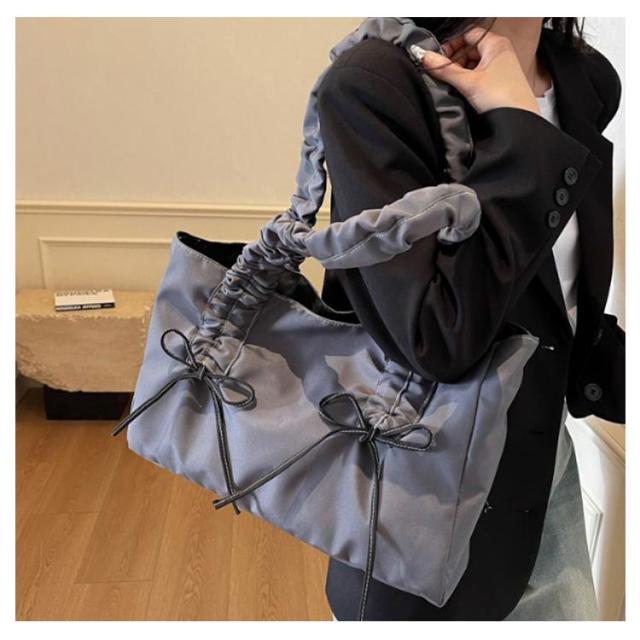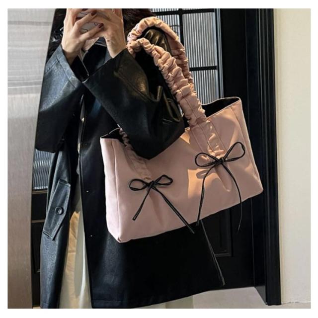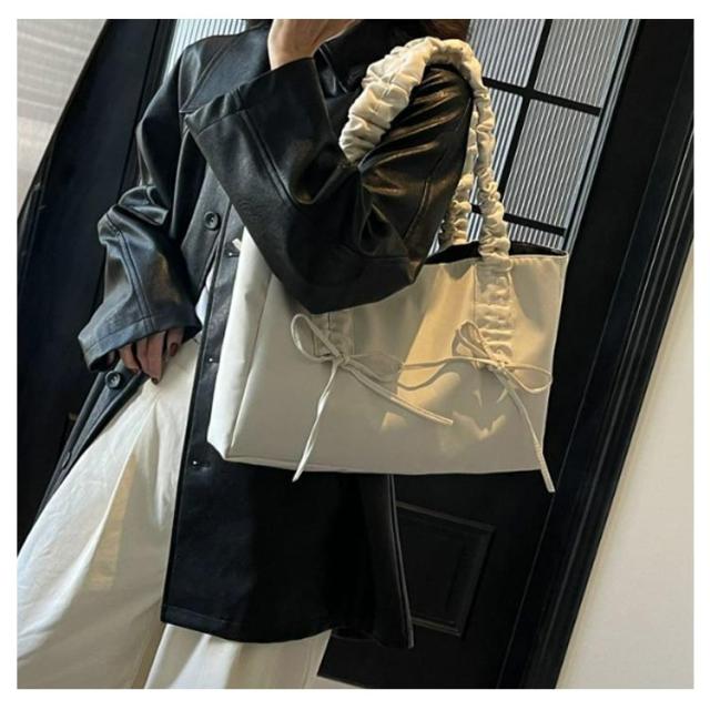 フリルハンドル トートバッグ 大きめ バッグ かばん 鞄 レディース ハンドバッグ トートバッグ A4 フリル リボン ギャザーバッグ スクエア マチあり バッグ 通学 きれいめ 大人 可愛い おしゃれ 肩掛け 肩がけ 無地 ブラック ベージュ ピンク グレー