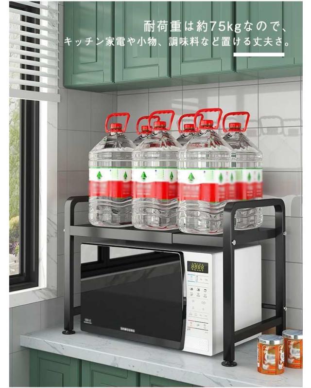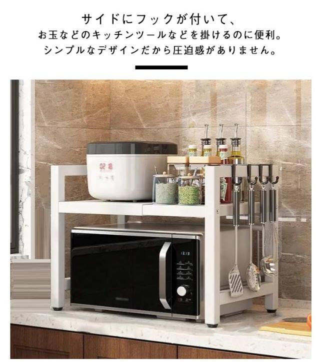 レンジ上ラック 伸縮 長さ38-64cm レンジ棚 1段 キッチン収納 レンジ上 ラック キッチンラック レンジ台 大型レンジ対応 電子レンジ台 トースター カウンター上 収納 卓上 棚 調味料ラック シンプル おしゃれ 北欧 キッチン用品 伸縮レンジラック