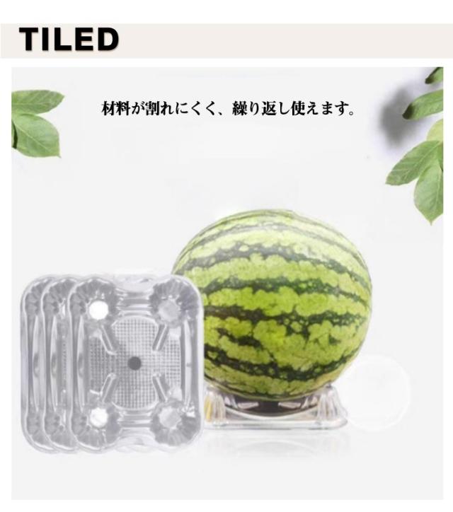 | 40個セット!スイカやメロン、かぼちゃなどの地這栽培果実の土との接地面腐敗防止や色むら防止に役立つ台座! 材料が割れにくく、繰り返し使えます。 果実の底部まで光が届き、底部に色がつきます。 穴が空いているため雨水が溜まりにくく通気性が良く、地面からの熱や湿気もこもりにくく、果実の品質を向上させる効果が期待できます。 果実が浮いているので、腐敗、虫害、 水たまり等で痛みません。 | |