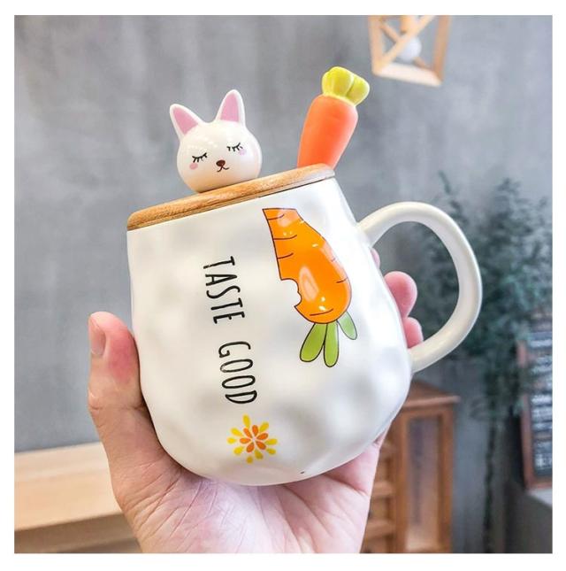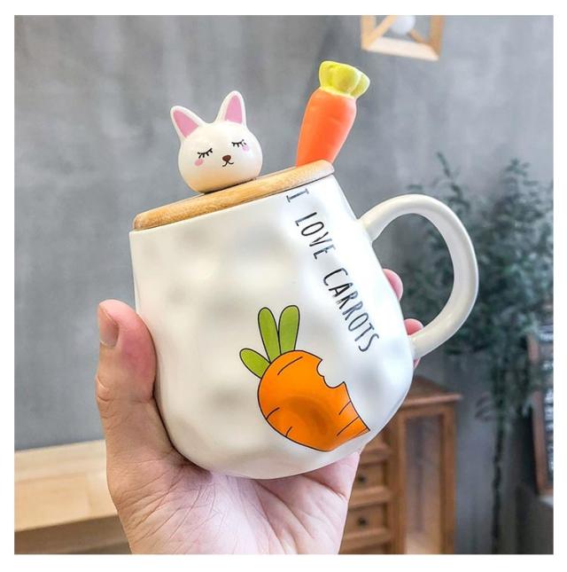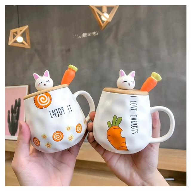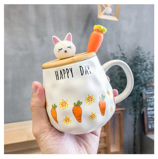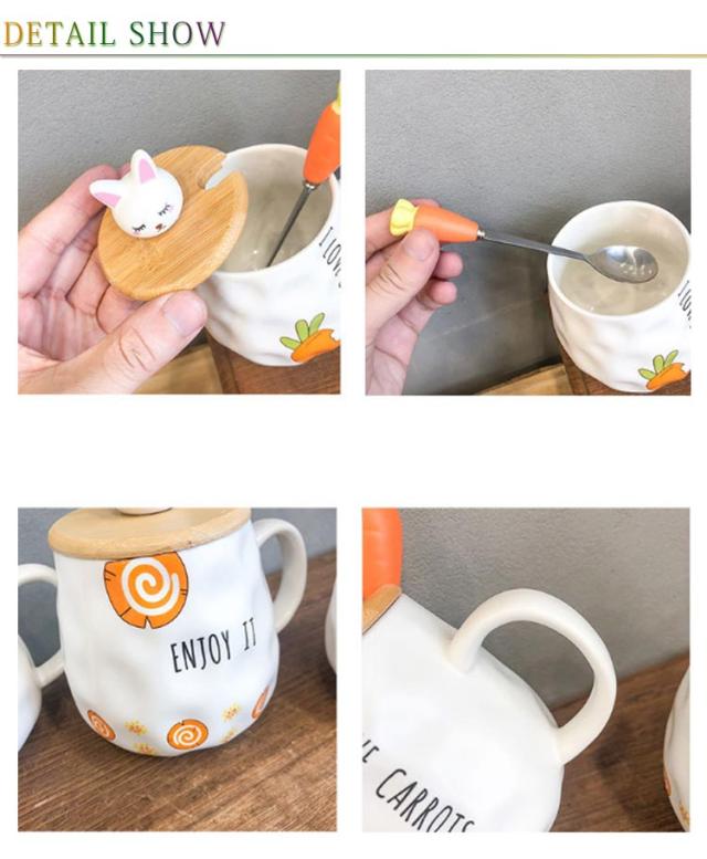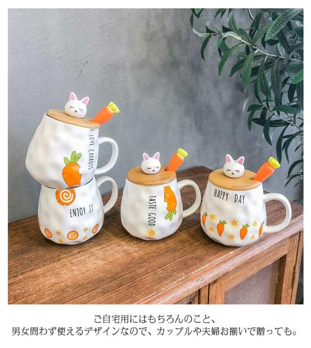 マグカップ 蓋付き 北欧 おしゃれ 400ml ウサギ ブランシェ マグ ペア ホーロー風 デザイン雑貨 匙付き コップ 食器 ブランド マグ かわいい 蓋付きマグカップ 陶器 男性 女性 彼氏