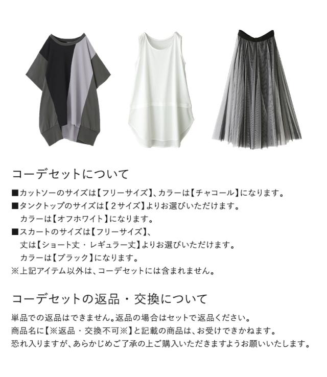 【送料無料】『3配色ドルマンカットソー×吸水速乾レイヤードタンクトップ×配色ボリュームチュールスカートコーデ3点SET』【メール便不可】【30】[3点コーデセット 2025 レディース カットソー タンクトップ スカート]