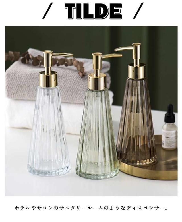 | 【ガラス製ディスペンサー】 【2本セット!】 ホテルやサロンのサニタリールームのようなディスペンサー。 淡い色合いを放つスタイリッシュなソープディスペンサーで毎日の暮らしをおしゃれに。 | |