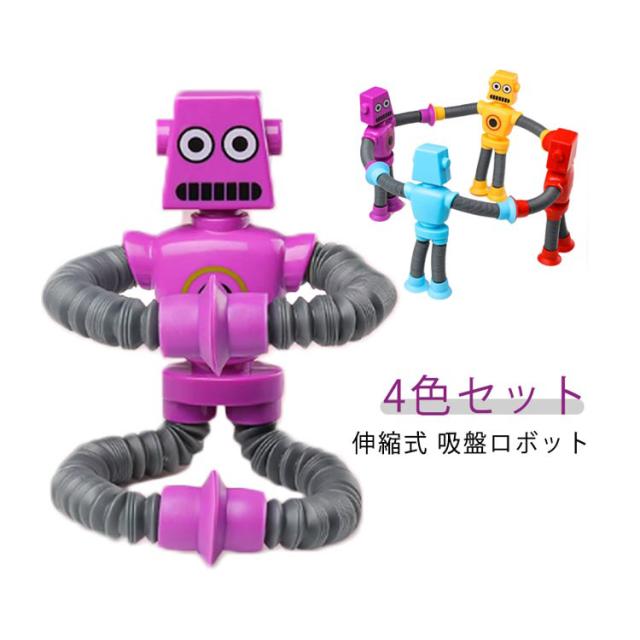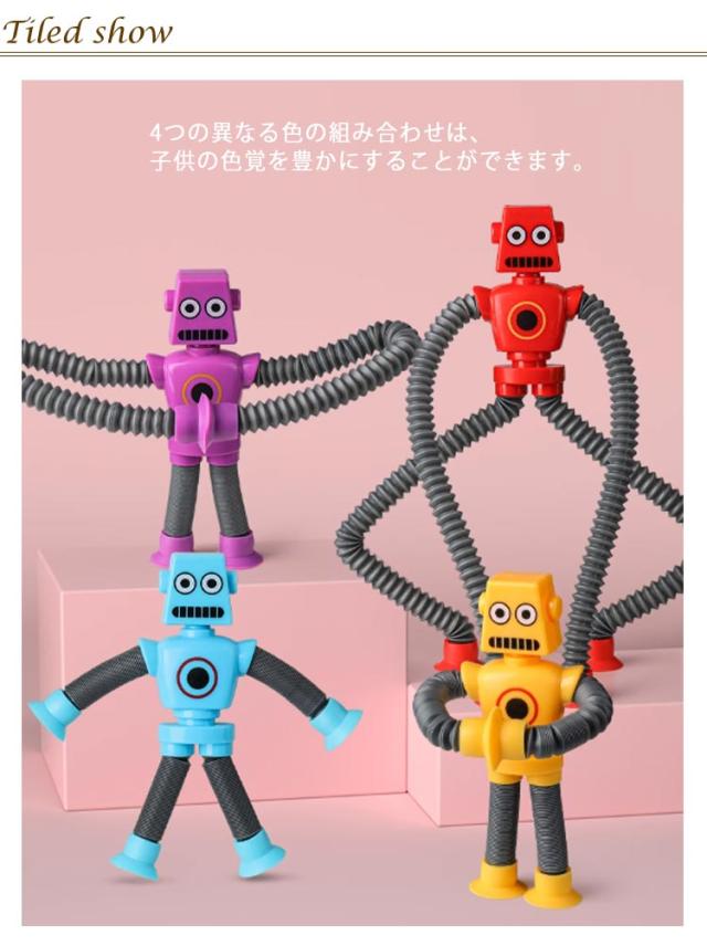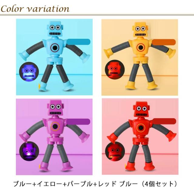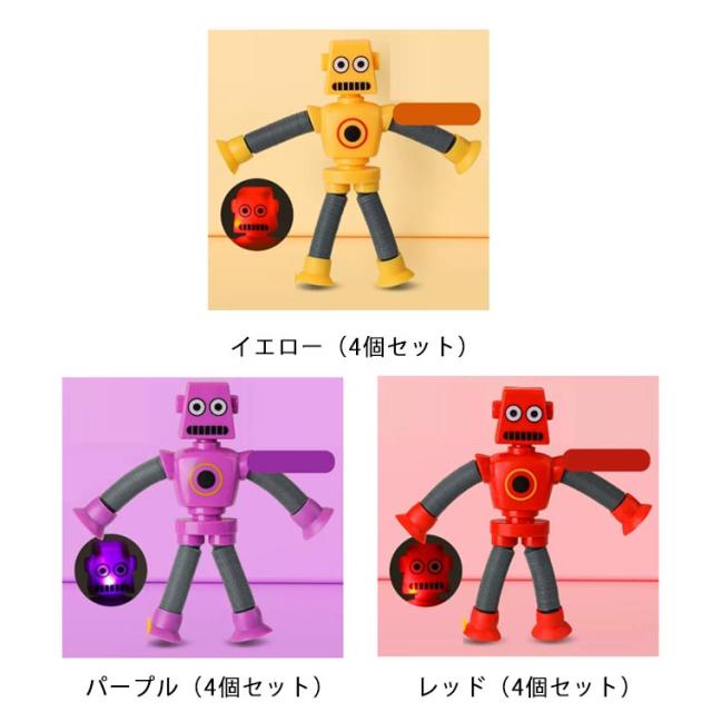 壁も使える 吸盤 4個セット 光る 4歳 2歳 男の子 ロボット 知育玩具 お風呂 おもちゃ 誕生日 立体パズル 知育 玩具 子供 伸縮式 女の子 3歳 1歳 5歳 6歳 モンテッソーリ 4個セット 室内 指先の知育 遊び 柔らかい ごっこ遊び