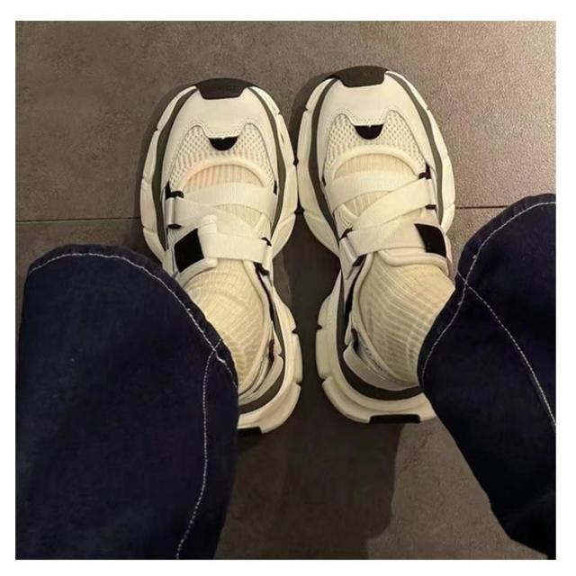 ベルト ストラップ レディース 厚底 スニーカーサンダル おしゃれ スニーカー 厚底スニーカー つま先あり スニーカーサンダルレディース ベルクロ マジックテープ メッシュ スニーカーサンダル レディース 厚底 ブラック 黒 白 ホワイト