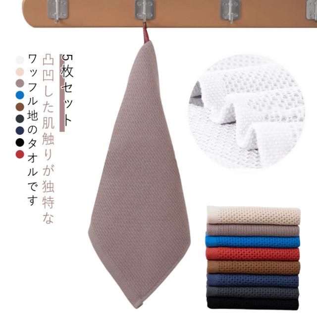 バスタオル フェイスタオル まとめ買い 丸洗い ホテルタオル 5枚セット 綿 ワッフル生地 手拭きタオル 洗顔タオル 綿 顔拭きタオル 厚手 無地 フェイスタオル タオル 吸水 収納 ホテル デイリータオル