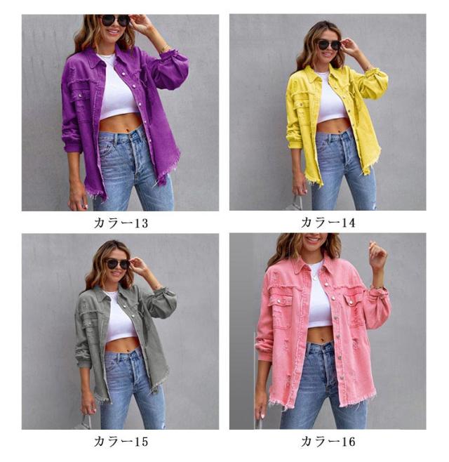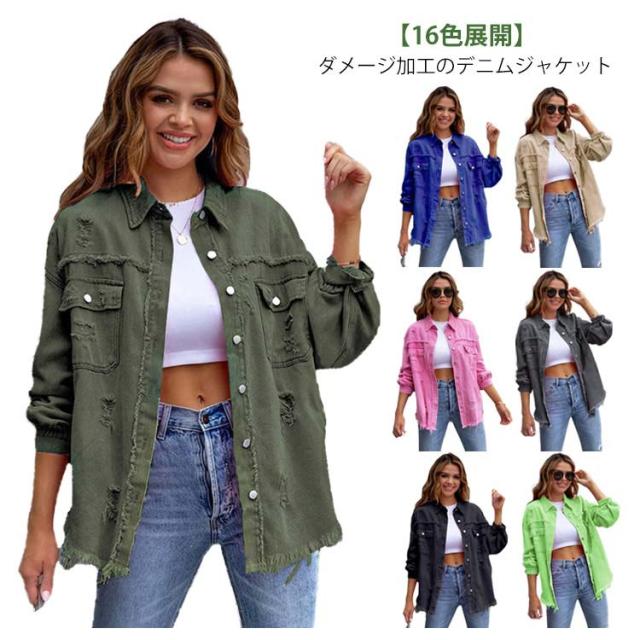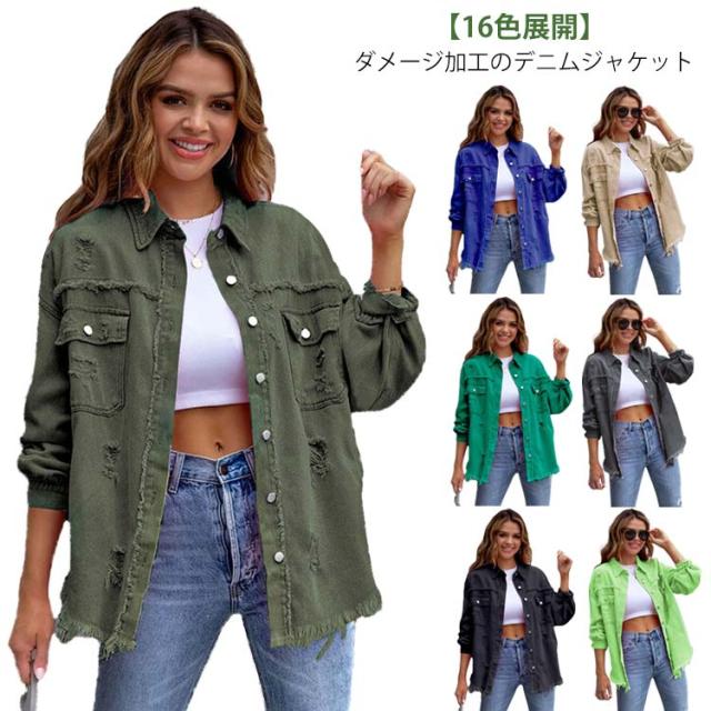 カジュアル レディース 体型カバー ダメージデニム 冬 デニムジャケット 無地 春 デニムジャケット ゆったり ジージャン 夏 おしゃれ シンプル 16色展開 大きいサイズ 秋 普段着 アウター 軽量 人気 季節問わず 通勤