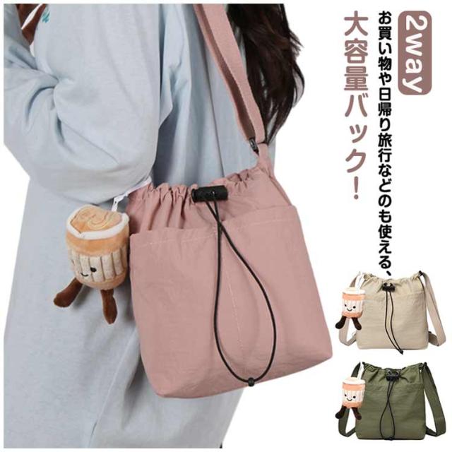 軽量 巾着型 通学 カバン トートバッグ 2way 斜めがけ 大容量 多機能 長さ調整可能 ショルダーバッグ 大容量 ポケット ナイロンバッグ レディース メンズ カジュアル 通勤 ショルダーバッグ 旅行 男女兼用