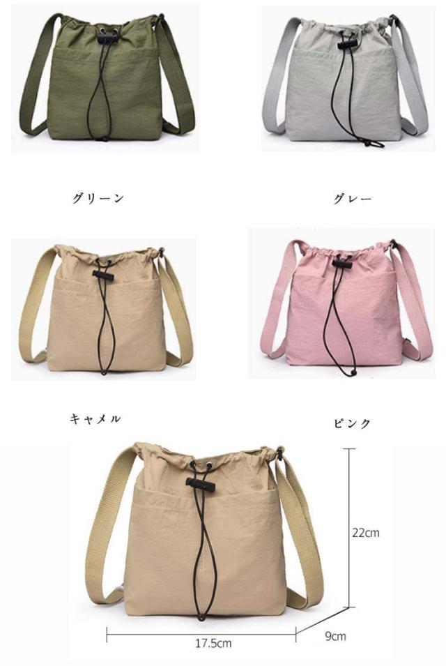 | お買い物や日帰り旅行などのも使える、大容量バック! 高密度なナイロン生地を使用して、快適な感触と耐摩耗性を兼ね備えています。 大容量でポケット付き、A4書類、折り畳み傘、iPadなどを収納できる便利な大きさのサイズ。 ショルダーベルトの長さ調整可能なので、斜め掛け、肩がけ、どちらでもお使いいただけます。 口部はドロストデザインの巾着型で大きく開いて物の出し入れも楽にできます。 普段お出かけ場合のショッピングバッグとしても、または学生達の通学バッグ、旅行の収納バッグとしても素敵! | |