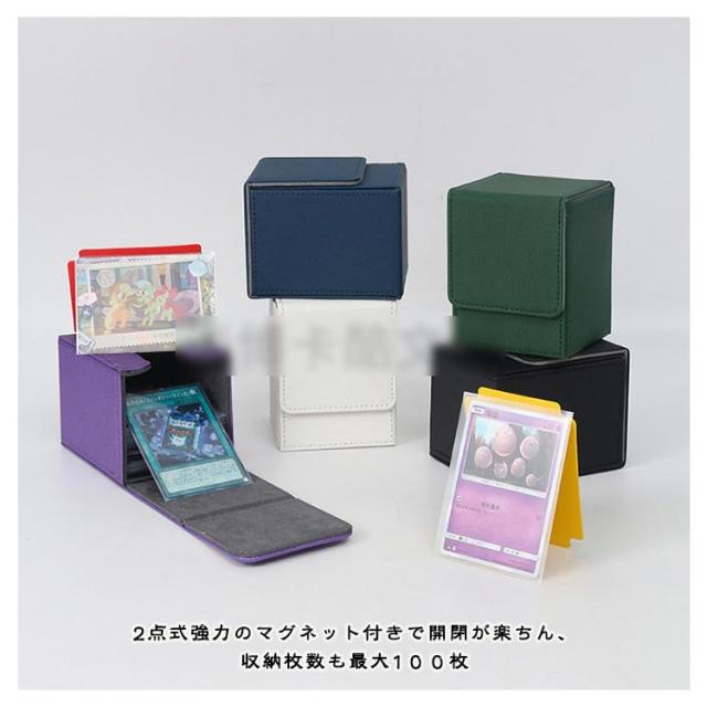 | PUレザー調 シックで高級感があるので、仲間から一目置かれること間違いなし。 トレーディングカードを整理するのに欠かせないアイテム「デッキケース」、かゆいところに手が届く豪華仕様。 2点式強力のマグネット付きで開閉が楽ちん、収納枚数も最大100枚 【各種トレカに対応】遊戯王、ポケモン、 デュエマ、バドスピ、 ワンピース、MTG 各種 カードの収納に最適、スリーブ、スタンダード サイズ、スモールサイズが余裕に入り、大事なトレカの紛失防止になる 外側はタフで汚れにくい防水 合皮を使用しているため、外部の衝撃からしっかり守る。一方、裏側は柔らかいナイロンを使用し、カードにキズがつきにくい構造になっている | |