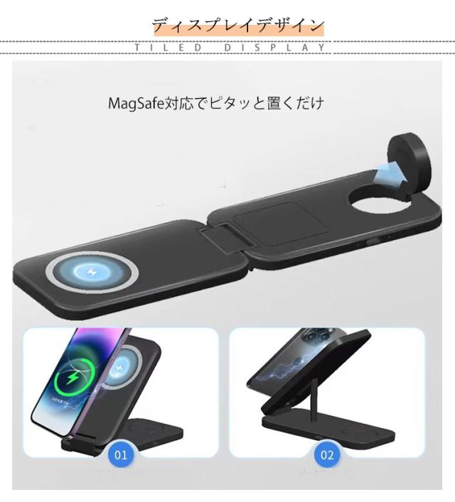充電スタンド 折りたたみ 3in1 マグネット スマホ充電器 3台同時充電 ワイヤレス充電器 コンパクト