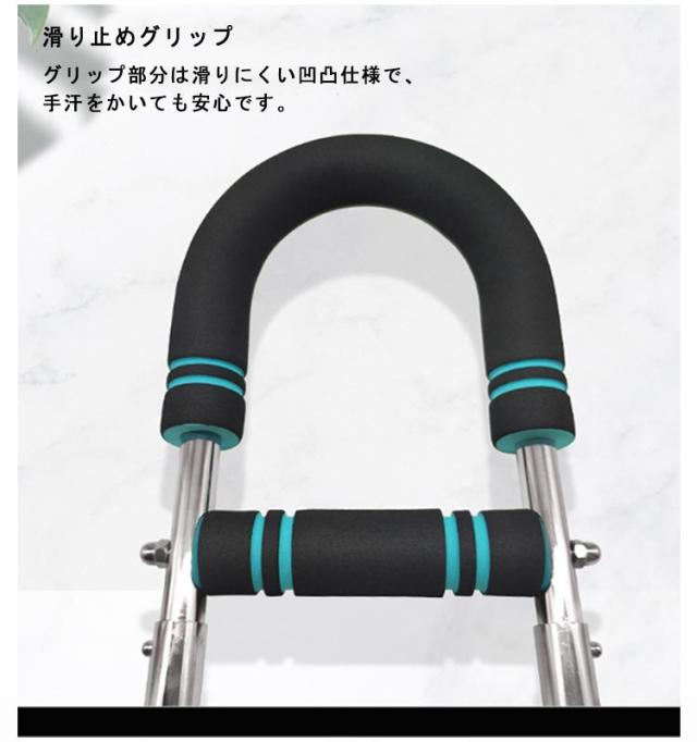 | 自宅で本格全身トレーニング!胸筋・背筋・腕・腹筋に効く多機能アームバー 【滑り止めグリップ】 グリップ部分は滑りにくい凹凸仕様で、手汗をかいても安心です。 3段階負荷調整+3種の重量タイプで自分だけの強度に 【3段階の負荷調整可能】 調節可能なグリップ位置を上下にスライドさせるだけで30kg/40kg/50kgの3モードに瞬時切替。 【高耐合金製】 合金鋼フレームと高強度金属バネでブレない安定感を実現。汗や摩耗にも強く、長時間のエクササイズでも疲れにくいホールド感を提供します。 こんな方におすすめ! 自宅で本格的な筋トレをしたい方 ジムに通えない日も全身を鍛えたい方 自分のレベルに合わせた負荷でトレーニングしたい方 簡単に収納・持ち運びできる器具を探している方 | |