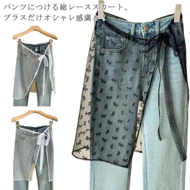 シアースカート レディース 花柄 付け裾 刺繍 シースルー レーススカート レイヤード ラップスカート ボトムス 春 夏 巻きスカート 総レース 重ね着 つけ裾 チュール スカート ペチコート 体型カバー レーススカート きれいめ